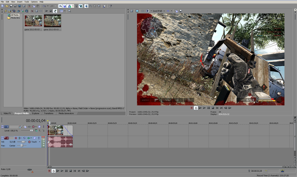 выберите сохраненный пресэт - в левой панели SonyVegas >